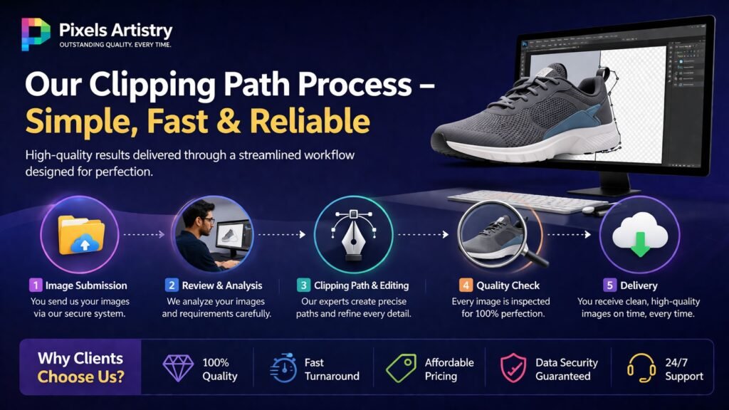 One of the reasons businesses prefer Pixels Artistry is their straightforward and user-friendly workflow. Working with a Best Clipping Path Service Provider Company should not be complicated, and Pixels Artistry ensures a smooth experience from start to finish.